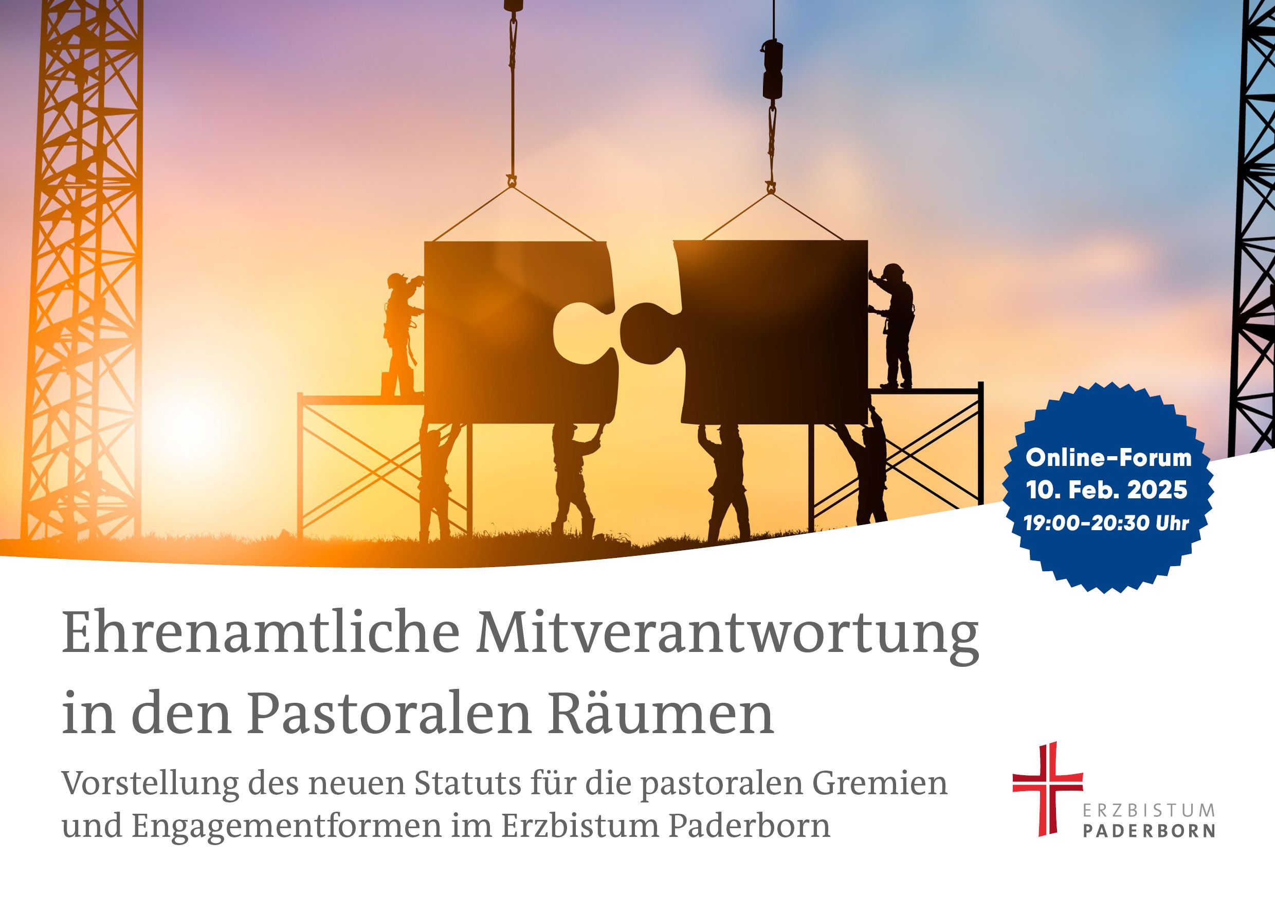 An diesem Abend werden Ihnen die unterschiedlichen Modelle ehrenamtlicher Mitverantwortung und das neue Statut für die pastoralen Gremien vorgestellt.